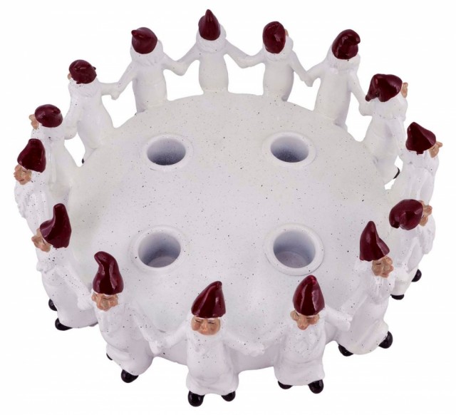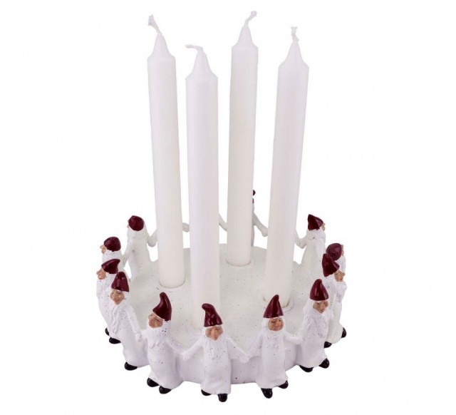 Disse 6 nissene, kledd i røde luer og frakker, spiller hvert sitt instrument rundt et bål. Med to trekkspill, et munnspill, en gitar, en bass og en sanger er denne gruppen mer en klar for å spille noen glade julesanger! Rom for telys.