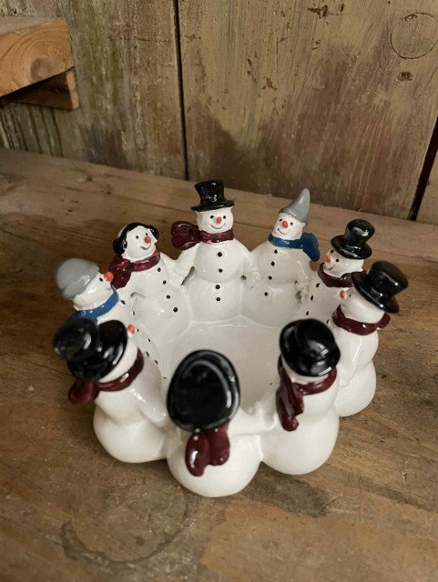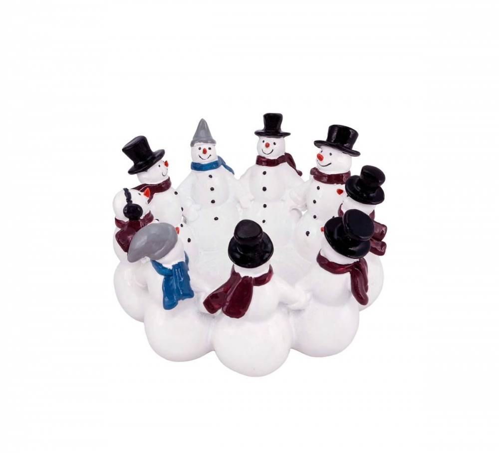 Disse 7 snømennene, kledd i røde og blå skjerf, og sorte og grå hatter, luer og øremuffer, står hånd i hånd rundt en flamme. Serien Harvesttime bringer tradisjon og julestemning inn i hjemmet ditt med en vakker kolleksjon av figurer som ni