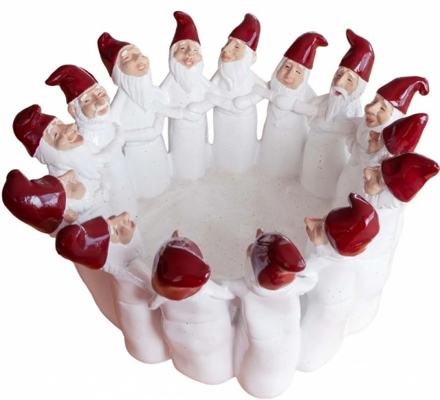 Disse 6 nissene, kledd i røde luer og frakker, spiller hvert sitt instrument rundt et bål. Med to trekkspill, et munnspill, en gitar, en bass og en sanger er denne gruppen mer en klar for å spille noen glade julesanger! Rom for telys.