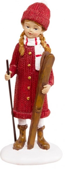 Jente på skitur Artikkelnr.: 122904 Denne fine vinterfiguren ikledd røde strikkeklær har funnet frem skiene sine og er klar for å leke seg i snøen. Super vintage-inspirert dekorasjon til hele vinteren! 16,5 cm høy. NOK149,00 inkl. mva. På lager Kjøp Del dette