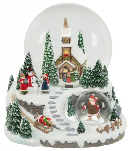 Julefigur med kirke og to snøkuler Artikkelnr.: 108819 Selges rabattert pga en liten boble i den lille kulen! Med musikk "Wish you a merry christmas" Diameter 12 cm, høyde 16cm NOK195,00 Førpris:NOK395,00 Rabatt -51% inkl. mva. På lager Kjøp Del dette