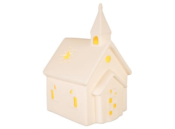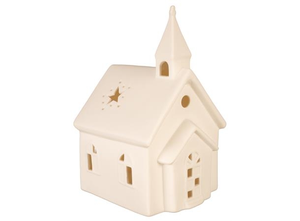 Kirke med lys, matt hvit 17 cm høy