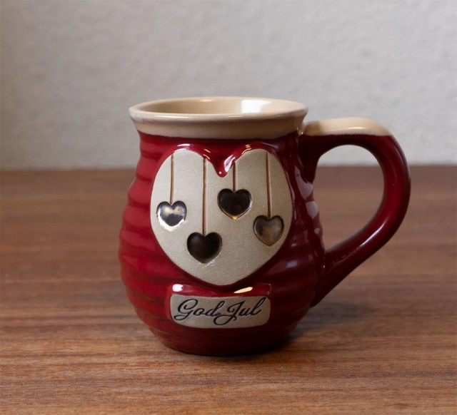 GOD JUL koppen med hjerter Artikkelnr.: 754982 Den ultimate julekoppen i klassisk rød med God jul og gullhjerter for de som elsker julen! Fyll koppen med din favorittdrikk og nyt juletiden. NOK149,00 inkl. mva. På lager Kjøp Del dette Produktinfo Farge: rød Høyde: 9,5 cmBredde: 12,5 cmDiameter: 8 cmVolum: 0,3 LMateriale: steintøy Tåler oppvaskmaskin.