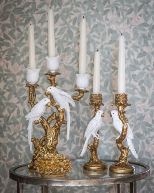 Trearmet lysestake formet som et tre med fugler. For de som ønsker et eksotisk og lekent element i interiøret sitt. Laget av poly, 38 cm høy.