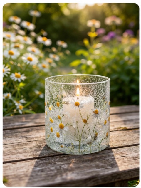 Lysglass kamille Artikkelnr.: 317662 Nydelig lysglass fra Trend design, 9 x 10 cm. Fantastiske detaljer! NOK195,00 inkl. mva. På lager Kjøp Del dette