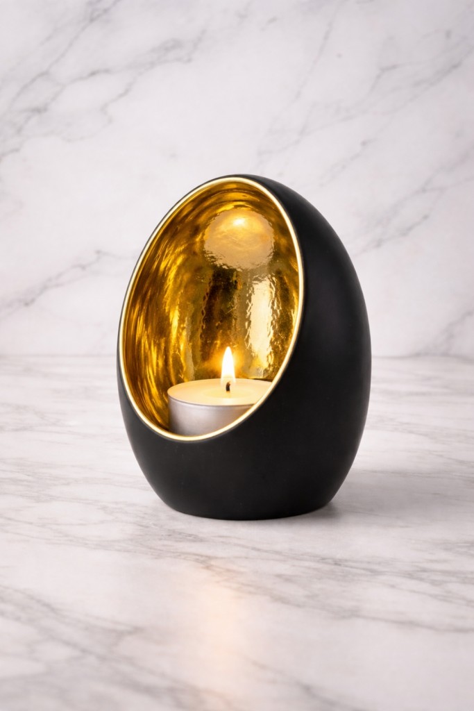 Lyslykt til telys i matt sort og gull, stor