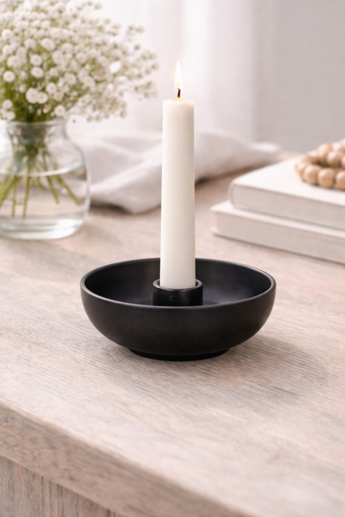 Lysskål til kronelys - matt sort Artikkelnr.: 94043 D14 H7,5 cm. NOK179,00 inkl. mva. På lager Kjøp Del dette