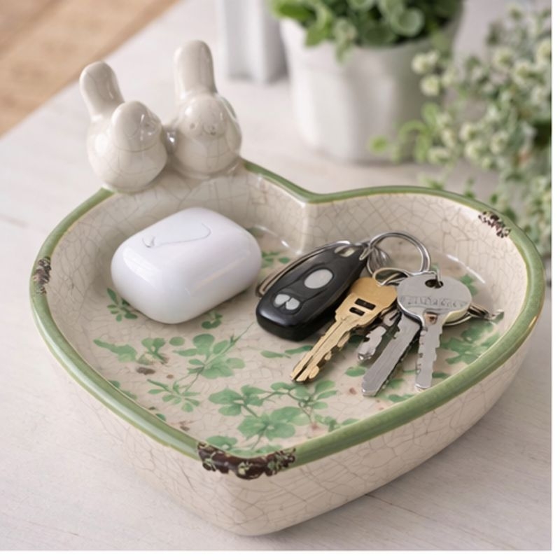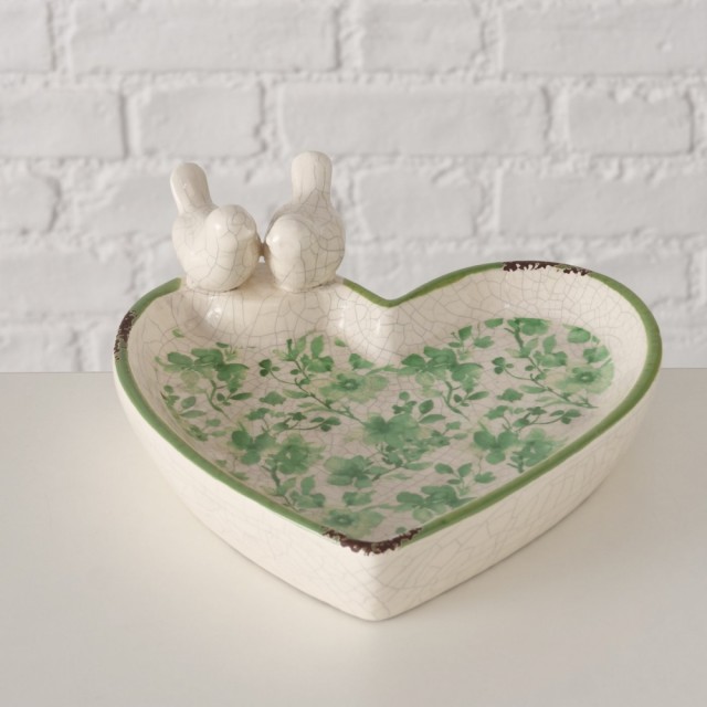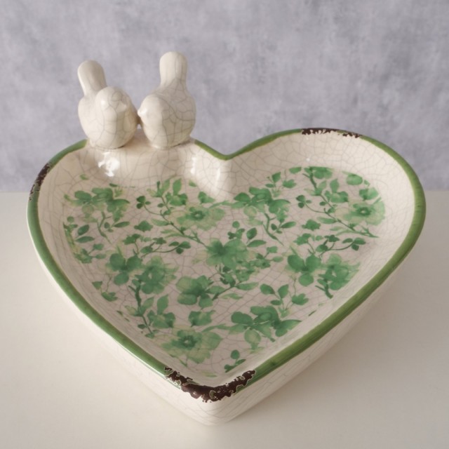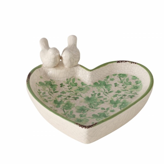 Fuglebad med 2 fugler Artikkelnr.: 2078350 Fuglebadet har en håndlaget hjerteform, blank glasur, blomstertrykk rundt hele verket og krakeleringseffekt. Bredden er 20 cm, lengden 19 cm og høyden er 7,5 cm. Fuglebadet er frostbestandig, noe som sikrer at det er egnet for utendørs bruk året rundt. NOK349,00 inkl. mva. På lager Kjøp Del dette