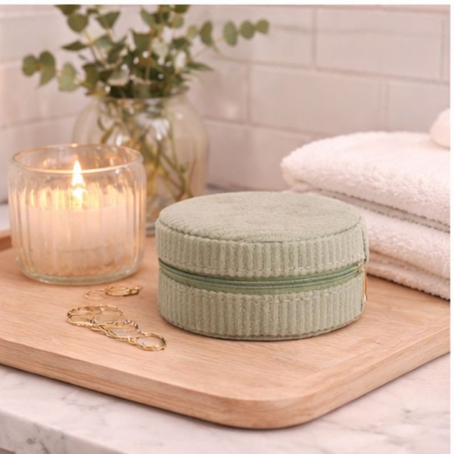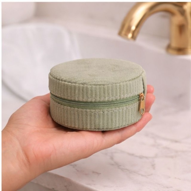 Smykkeskrin grønt rundt Artikkelnr.: 126903 9,5 x 5,5 cm. Flere rom og speil i smykkeskrinet. Glidelås i gullfarge. NOK159,00 inkl. mva. På lager Kjøp Del dette
