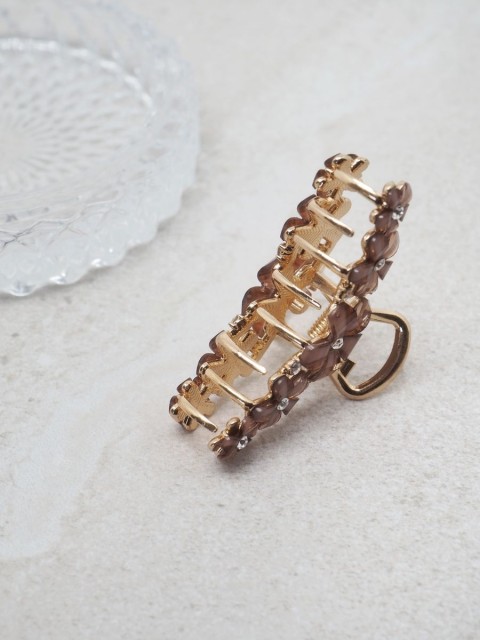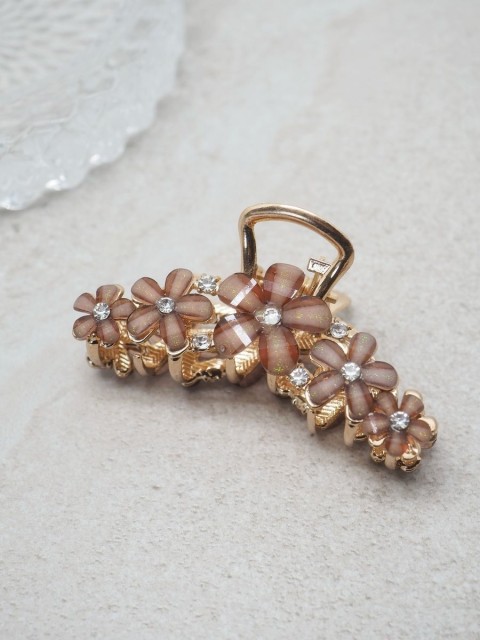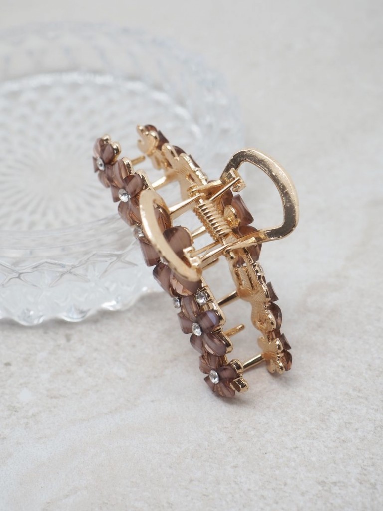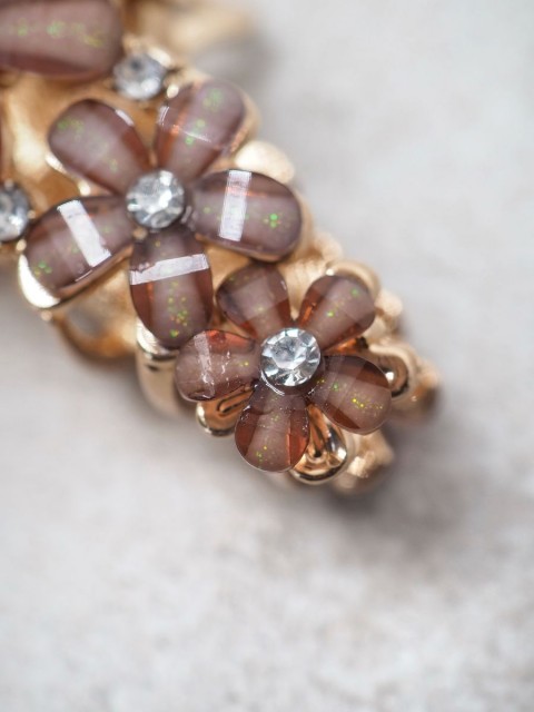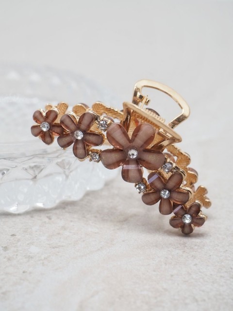 Hårklype med blomsterstener brun Artikkelnr.: 7days Hårklyper med blomster, glitter og blanke glasstener. Sitter supergodt i håret. Klypen har gulldetaljer. Lengde 7cm, høyde 3cm, medium stor klype NOK199,00 inkl. mva. På lager Kjøp Del dette
