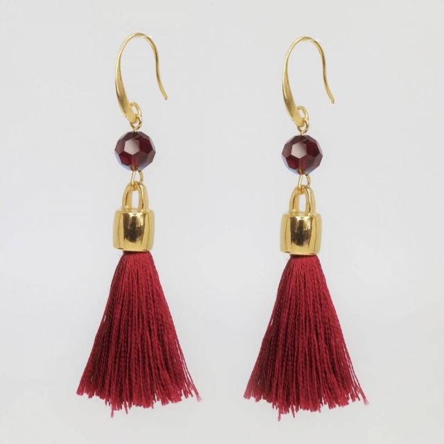 Øredobber med silketråddusk burgunder Artikkelnr.: 7days Øredobb med swarovski krystall med silketråd dusk. Ca 5 cm lang. Nikkelfri. NOK249,00 inkl. mva. På lager Kjøp Del dette