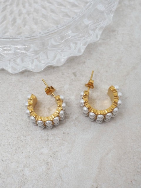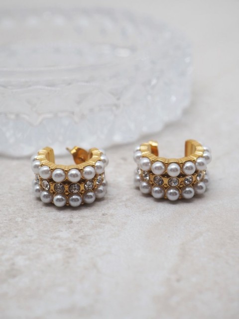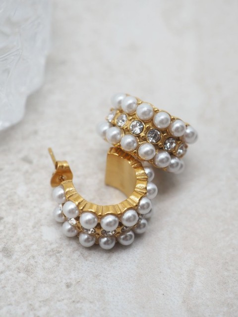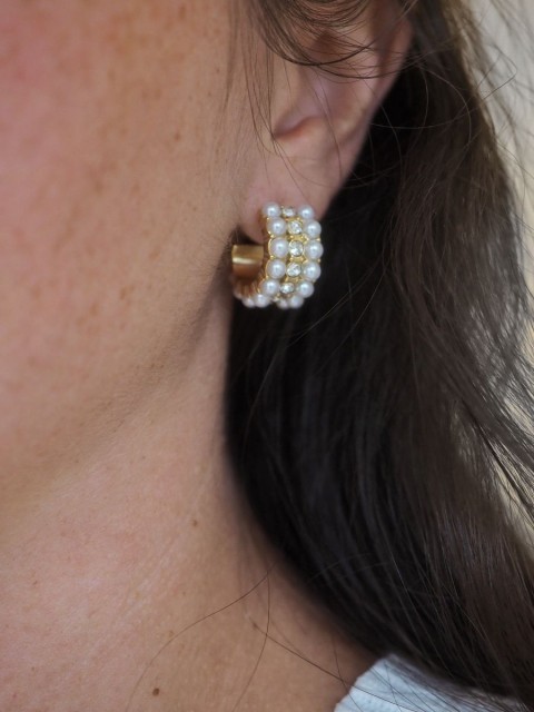 Øredobber med perler Artikkelnr.: 7days Disse nydelige hoopsene i gullfarget stainless steel kombinerer glansen fra små zirkoner med den myke elegansen fra hvite perler. Et klassisk og tidløst design som passer perfekt både til hverdags og fest. NOK299,00 inkl. mva. På lager Kjøp Del dette Produktinfo Den delikate kombinasjonen av perler og zirkoner gir et feminint og luksuriøst uttrykk, uten at øredobbene føles tunge. Lengde: ca. 2 cm. Bredde: ca. 1 cm.