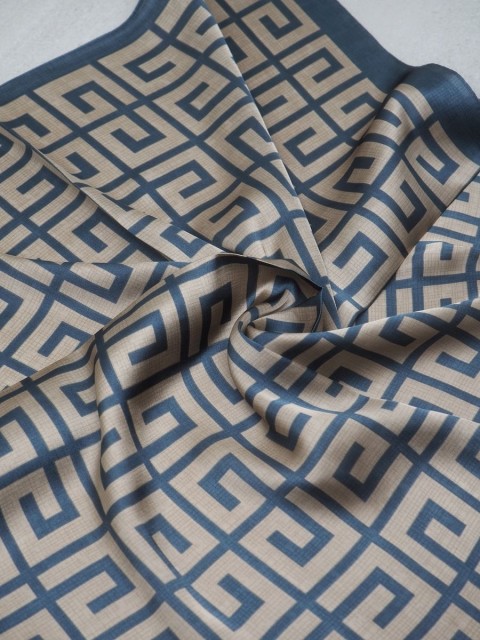 Den kompakte størrelsen på 70x70 cm gjør skjerfet enkelt å bruke rundt halsen, som hårtilbehør, eller knyttet til vesken for et sofistikert preg.