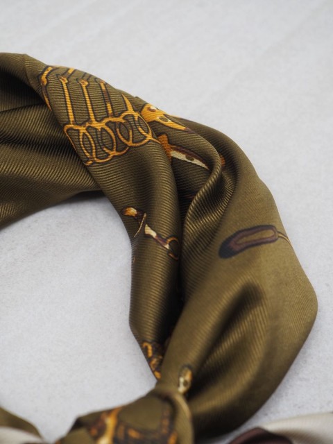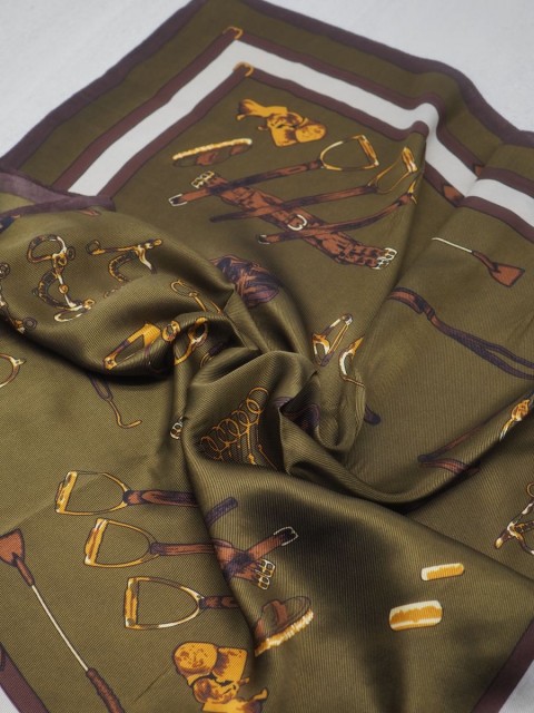 Dette satengskjerfet kombinerer olivengrønn og brun i et klassisk hestemotiv, og gir antrekket et elegant og lekent preg. Skjerfet er laget i 100% polyester med glansfull, myk overflate som føles behagelig mot huden.