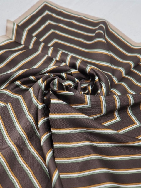 Satengskjerf striper beige og brun Artikkelnr.: 7days Dette satengskjerfet med brun og beige striper gir antrekket et klassisk og sofistikert uttrykk. Skjerfet er laget av 100% polyester med en glatt og glansfull overflate som føles behagelig mot huden. NOK199,00 inkl. mva. På lager Kjøp Del dette Produktinfo Med størrelse 70x70 cm kan skjerfet brukes på mange måter – rundt halsen, i håret eller som et dekorativt tilbehør på vesken.