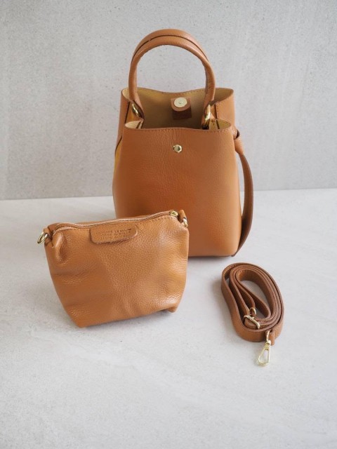 Bøtteveske i glatt skinn konjakk