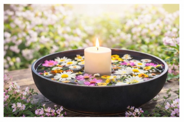Skål, 28 cm i diameter. Passer til kubbelys i midten så kan man pynte på sidene eller bruke skålen som vannbad med flytende blomster eller lys. Skålen er 10,5 cm høy.