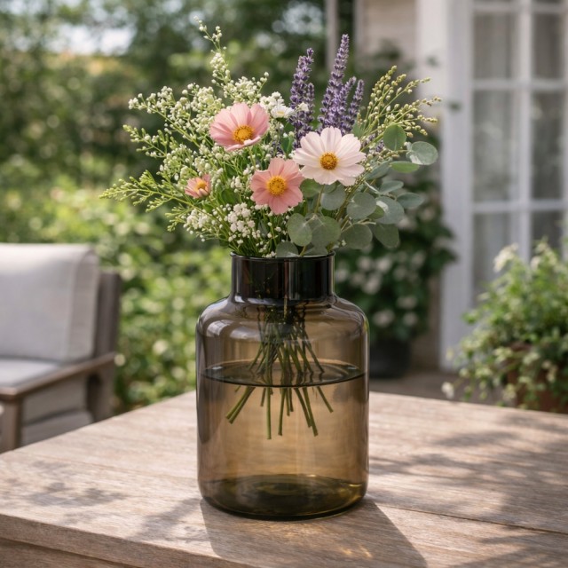 Vase resirkulert glass grå 20cm Artikkelnr.: 121298 Vasen er 14 cm bred. NOK149,00 inkl. mva. På lager Kjøp Del dette